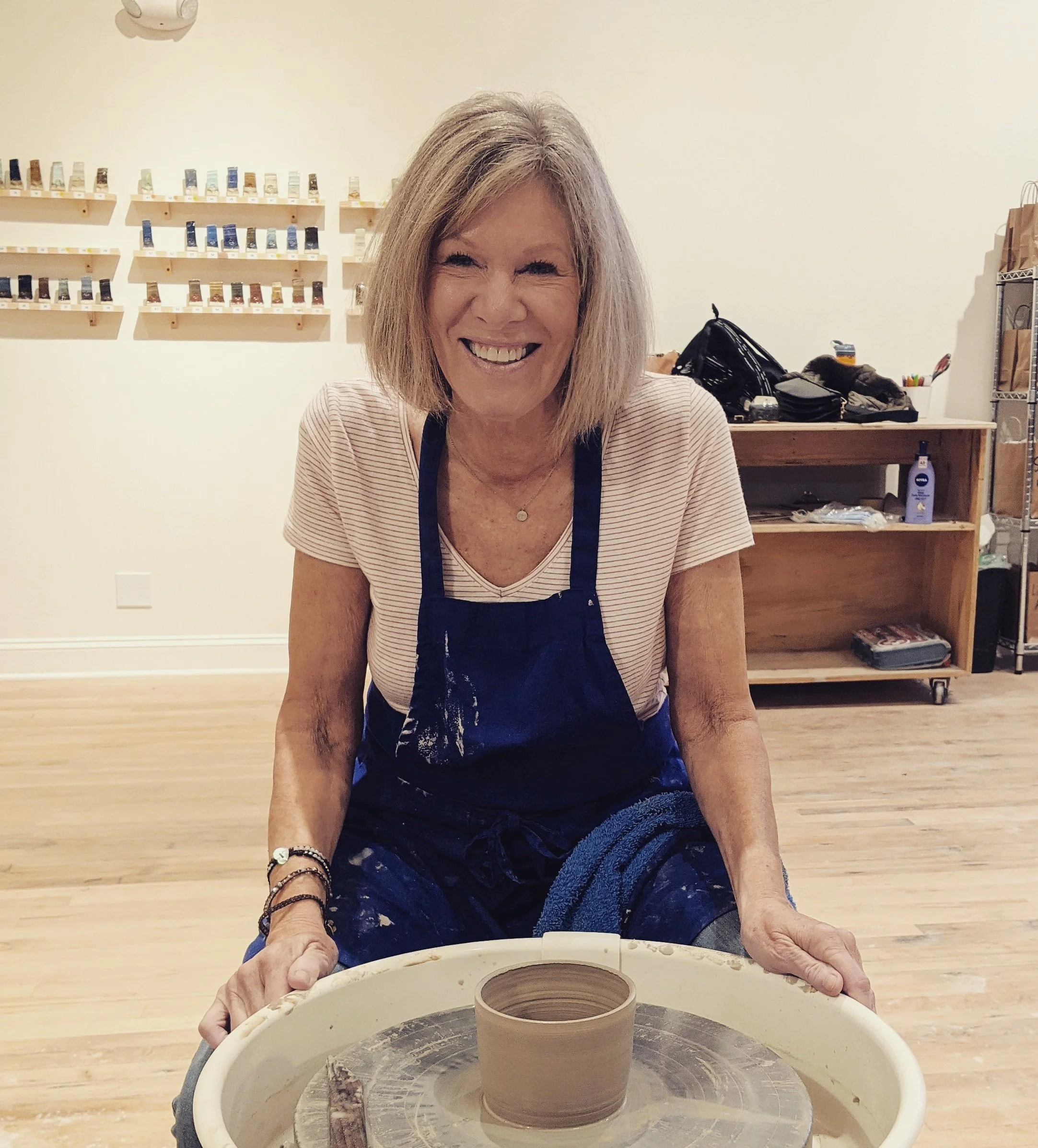 My love affair with ceramics began in the mid-70s at Wittenberg University, where I earned a Bachelor of Fine Arts degree - but then life happened and I didn’t touch clay again until 2021, when I moved to Oak Park and discovered ViaClay. I am now addicted to the daily practice of throwing, trimming, and glazing my pottery, and I am happier than I imagined possible at this stage of my life.
